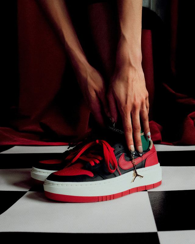 Bold and Bred, the low-top silhouette for women checks all the boxes, shaking hands were a classic Jumpman colorway, and a platform midsole are supposed to meet. The contemporary update dons an eye-pleasing two-tone, red, and black leather upper with unexpected, enlarged midsole, honoring the past and future of the Air Jordan 1.