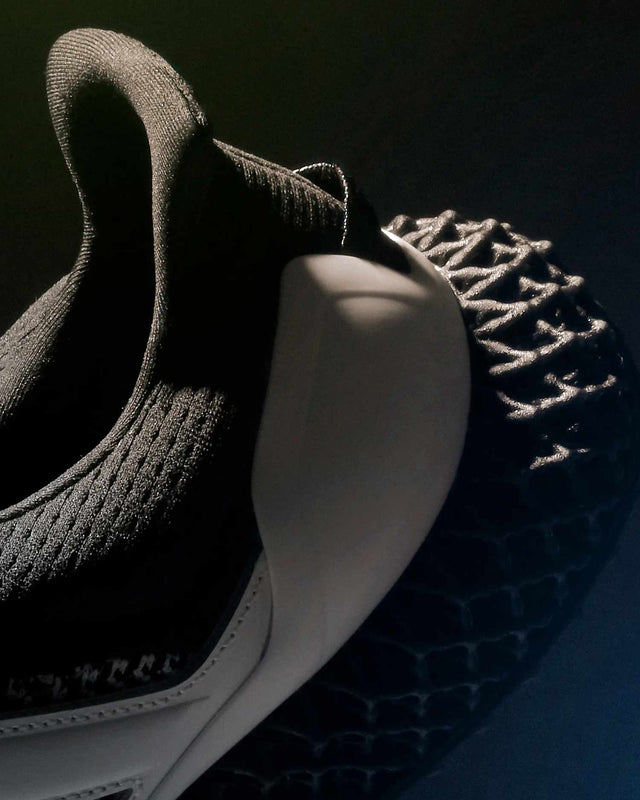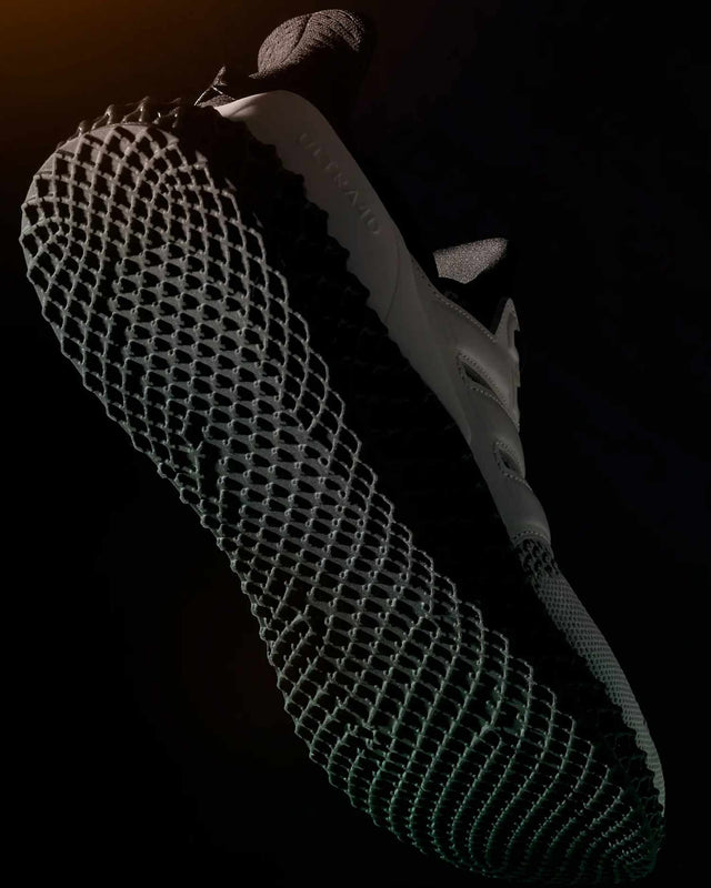 To pay homage to the Ultraboost "Tee Time" from 2016, an instant-classic of the modern-day sneaker world, SNS and the Three Stripes turn to the most revolutionary digital printing technique. Informed by 15 years of extensive research, crafted with light and oxygen, the Ultra4D "Tee Time" is where sports meets technology. Constructed with adidas Primeknit, just as the original from 5 years ago, the Ultra4D tells the “Tee Time” story from the future. The lightweight upper construction fuses with the progressive lattice single-component and fully blacked-out midsole that is precisely tuned to absorb pressure from all foot parts.