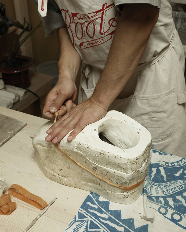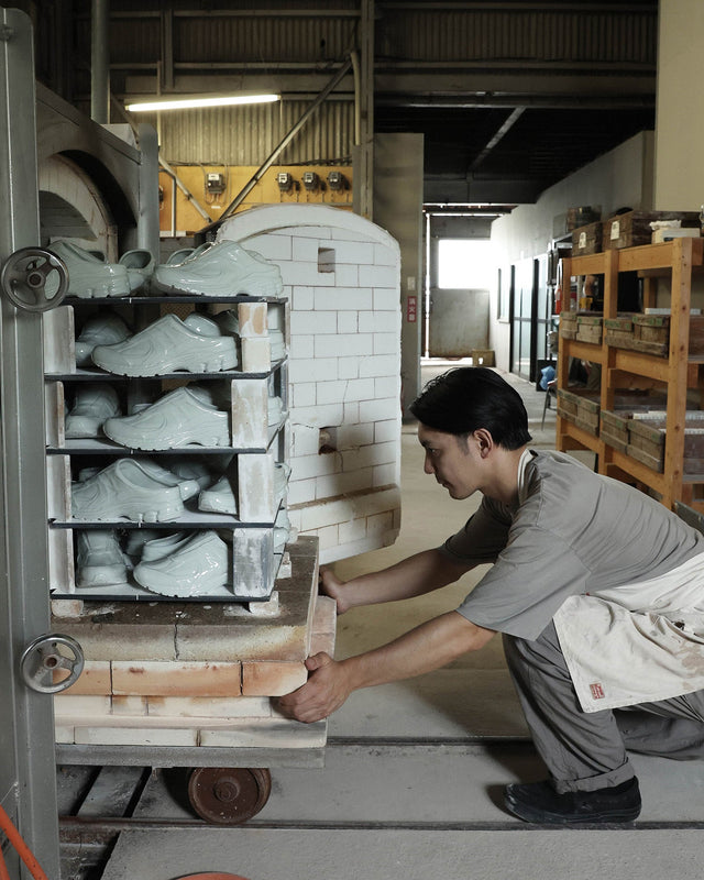 The SNS x New Balance Mule incense chamber is created in Seto, Aichi an area that has a long history of making ceramics. From the first step, making the plaster mold, to the last firing ceramic, Kensaku Harada makes everything by himself, this is a true piece of Japanese craftsmanship.