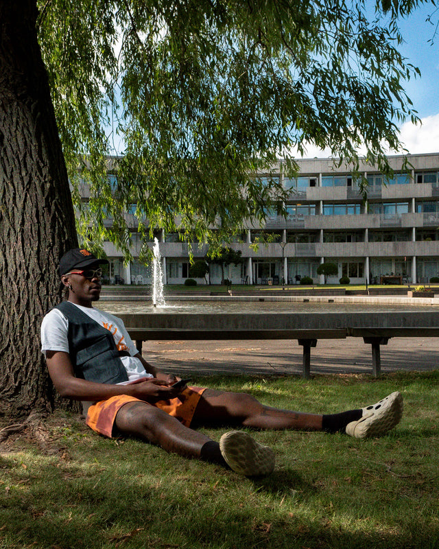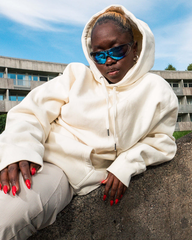 The capsule drop consists of a track top and pants made with polyamide, a cotton twill utility jacket, a cotton white short-sleeve t-shirt, a hoodie with "Save The Youth" puff printed on the back, a recycled denim vest, a recycled denim tote bag and a cotton cap with embroidered detailing. All items in this collection are made by Diemonde, powered by SNS, and designed in Sweden to inspire the youth to be brave, disruptive, and powerful. On top, each cut & sew item of the collection has been produced by Fugeetex in Örebro, a factory where refugees with experience in garment factories worldwide can bring in their expertise while creating financial independence. The campaign is led by young cultural leaders that inspire us and impact the cultural change on the streets of Stockholm.