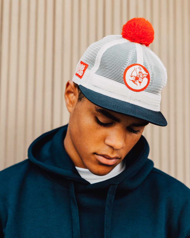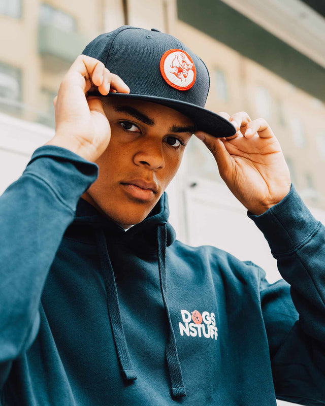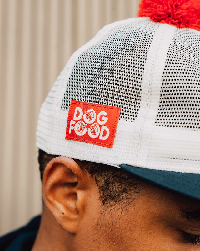 While two of the caps keep it classic featuring Dogsnstuff and Dogfood logo embroideries on the front panels and back, the allover mesh fabricated pompom New Era cap is a true eye-catcher and perfect to wear when standing in front of a hot grill.