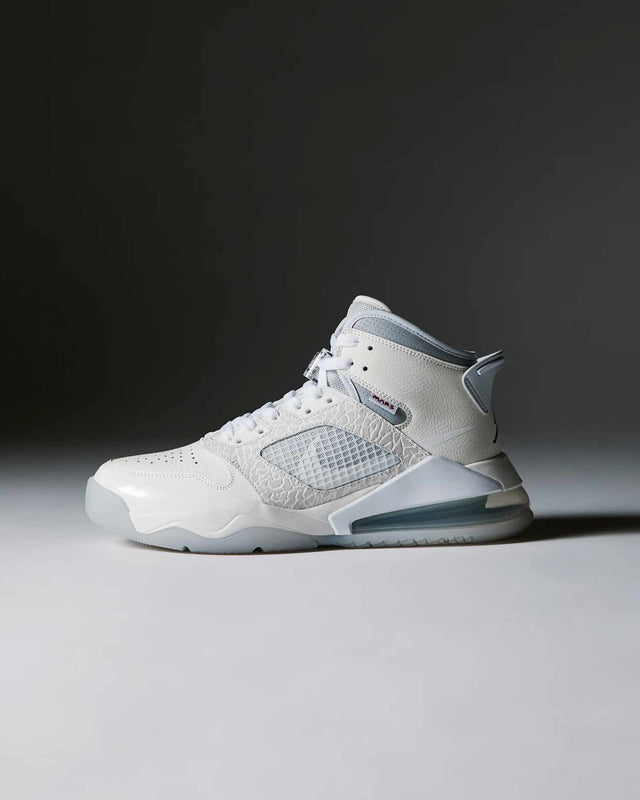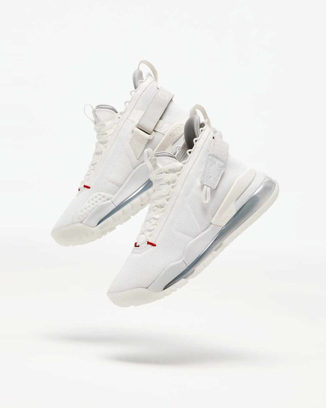 While referencing our history, the exclusive Air Jordan 1 Mid looks to Jordan Brand DNA through a premium selection of materials, made from sail-colored leather, Wolf Grey-colored nubuck, and hints of Team Red. As a tribute to its roots as well as the status quo of current Jordan shoes, we have blended materials, elements and inspiration on the exclusive Jordan Mars 270 with design features from the Jordan 1, 4, 5, 6, 10, 11 and 12 as well as being stacked with an Air Max 270 heel unit. Rounding off the sneaker trio, acknowledging the past and present of Jordan Brand’s narrative, the SNS exclusive Proto-Max 720 embodies the future and where new concepts and technologies can lead to.