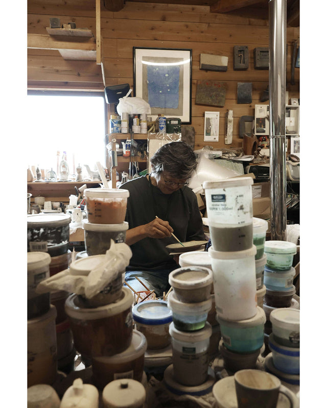 Kouichi Kobayashi lives in the Yamanashi countryside where he creates his ceramics. He used to be a painter that’s why you can see various combinations of colors in his work. Each piece is hand made.