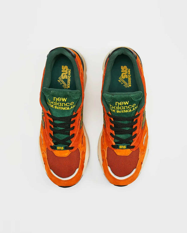 The Flimby factory-made SNS x New Balance 920 offers a combination of premium pigskin suede and mesh in bright orange and forest green color scheme, with yellow/black/3M detailing. Equipped with an ENCAP cushioning midsole and an overall retro sports style theme, the SNS x New Balance 920 offers a retro vibe for running fans or New Balance heads on the lookout for rarities.
