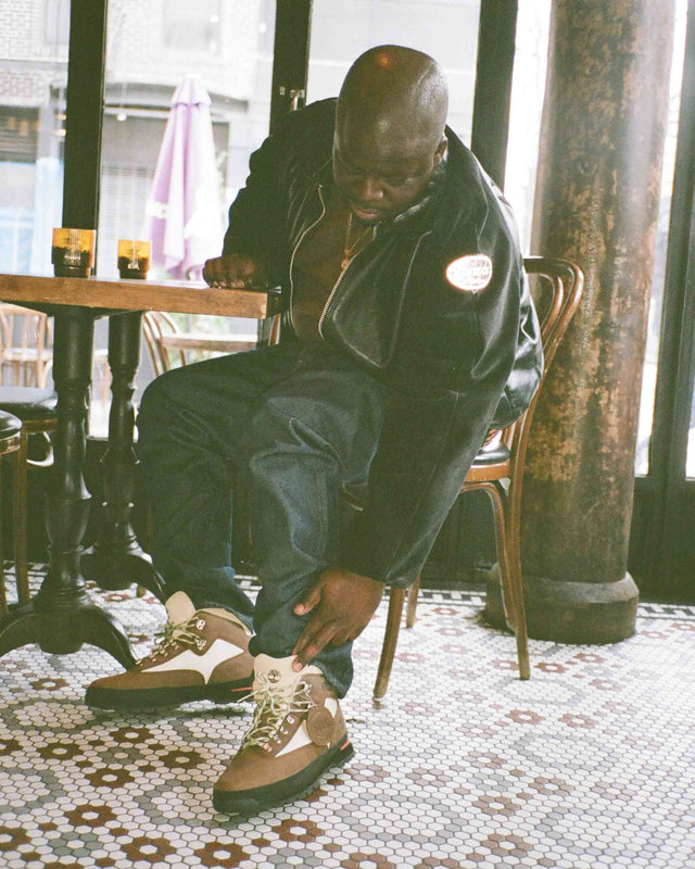 For the campaign, we tapped in with New York native and SNS collaborator - Waqas Ghani, to bring the NY energy to the Swedish twist of the classic timberland boot. Waqas cast producer and DJ, Yazmine Rosario, who often turned SNS BAR out with her DJ sets. In addition, we had one of Brooklyn's finest, Mid-Nite, a recording artist and all-around creative, to meet at Sauce Restaurant in the LES, where the campaign was shot. Midi casually orders up Meatballs and Mash to complete the fit.
