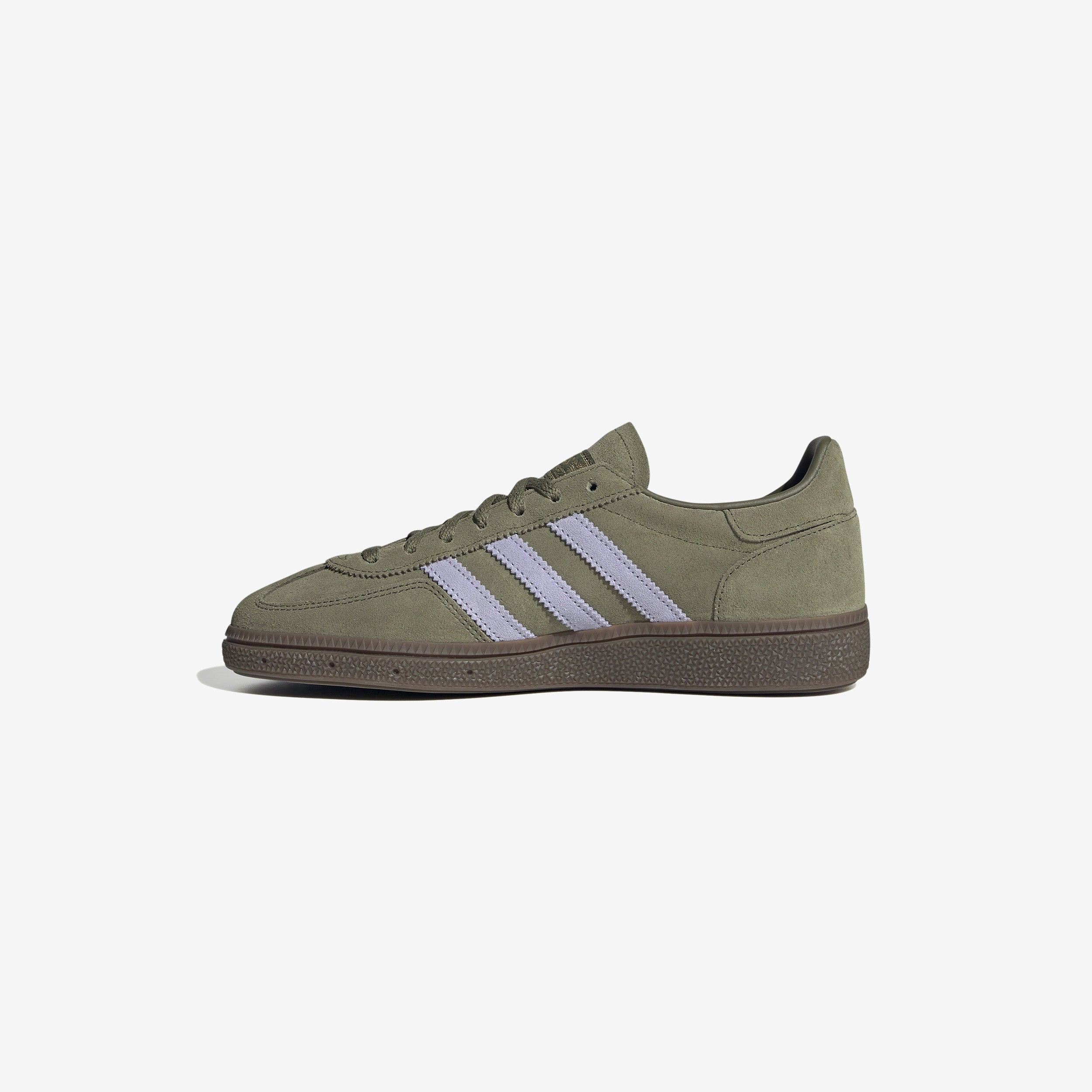 Originally designed for indoor sport, the adidas Originals Handball Spezial returns in a brand-new "Focus Olive" colorway, effortlessly fusing its street-sporty design with classic detailing. Crafted with soft suede, this edition of the adidas Handball Spezial maintains its nostalgic vibe with signature 3-Stripes logos on the sidewall, tongue label, and insole, while a durable rubber outsole rounds off the design, offering multidirectional traction for your daily explorations.