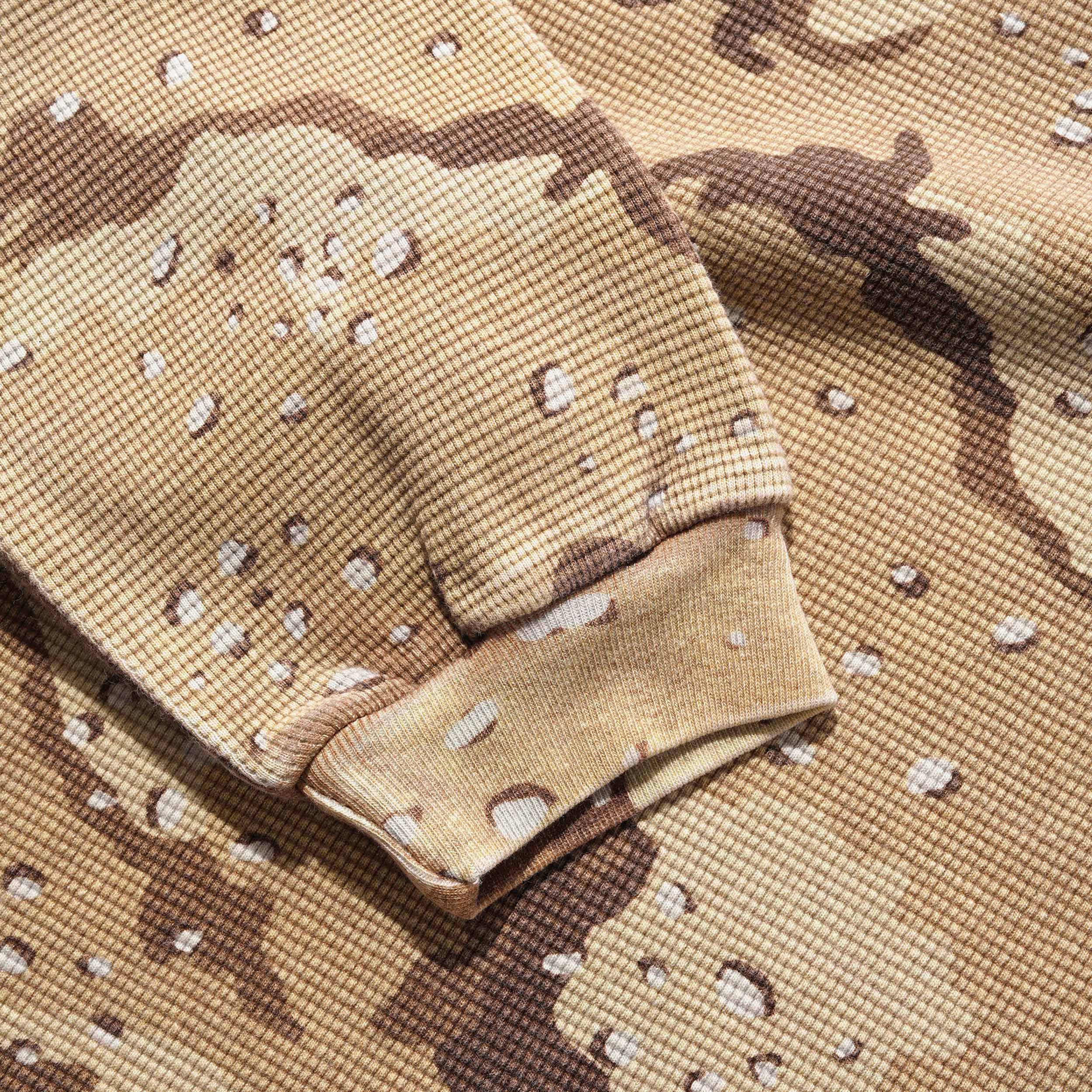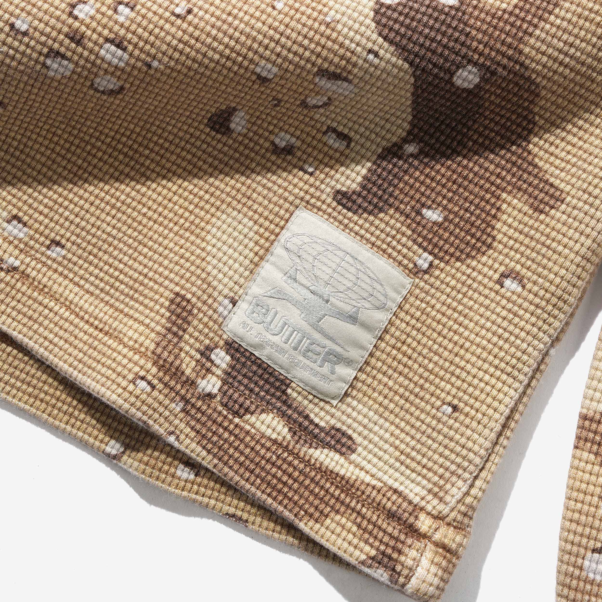 The Waffle Long Sleeve Top merges the texture of waffle knit with a long-sleeve cut — now featuring an all-over sand camo print, making it perfect for layering or standalone use.