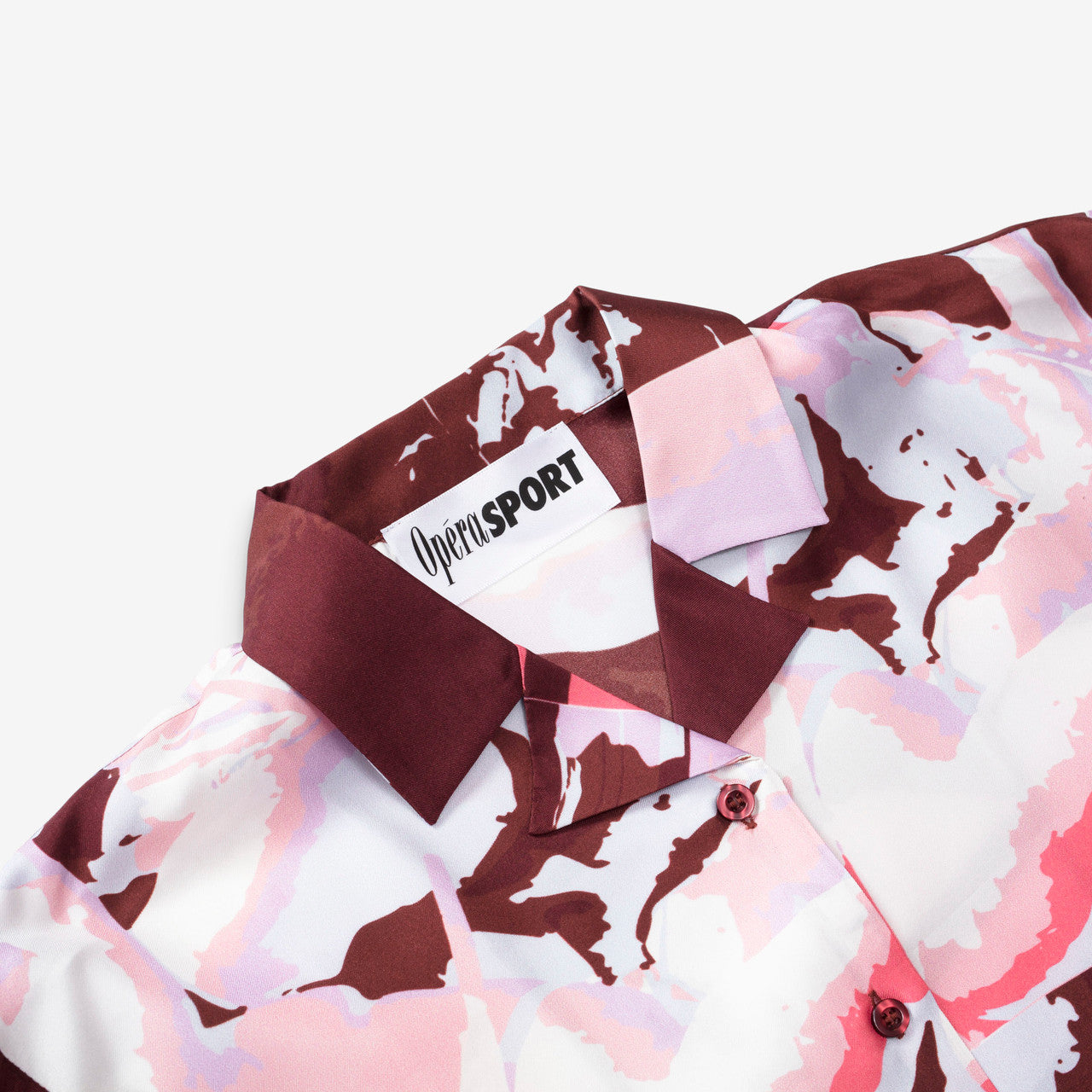 This Tony Unisex Shirt by OpéraSPORT brings the spring-summer vibes. Featuring an eye-catching print inspired by the sculptures that adorn Copenhagen and Paris in pink and purple hues. Equipped with a wide collar, and a black button closing at the front.