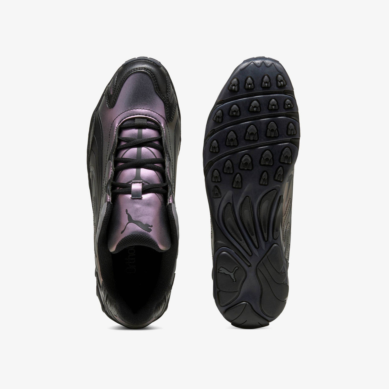Originally launched in 2000 as a running shoe with bold, exaggerated contours and a thick sole, the PUMA Inhale continues to grow and evolve with this brand-new cutting-edge Color Shifting iteration. Built with its extreme curves and aggressive DNA still intact, the PUMA Inhale Color Shifting is crafted with eye-catching iridescent and leather fabrics, complemented by the signature wavy contoured lines and distinct PUMA formstrip on the sidewall, while classic PUMA logos on the tongue label and heel counter round off the design.