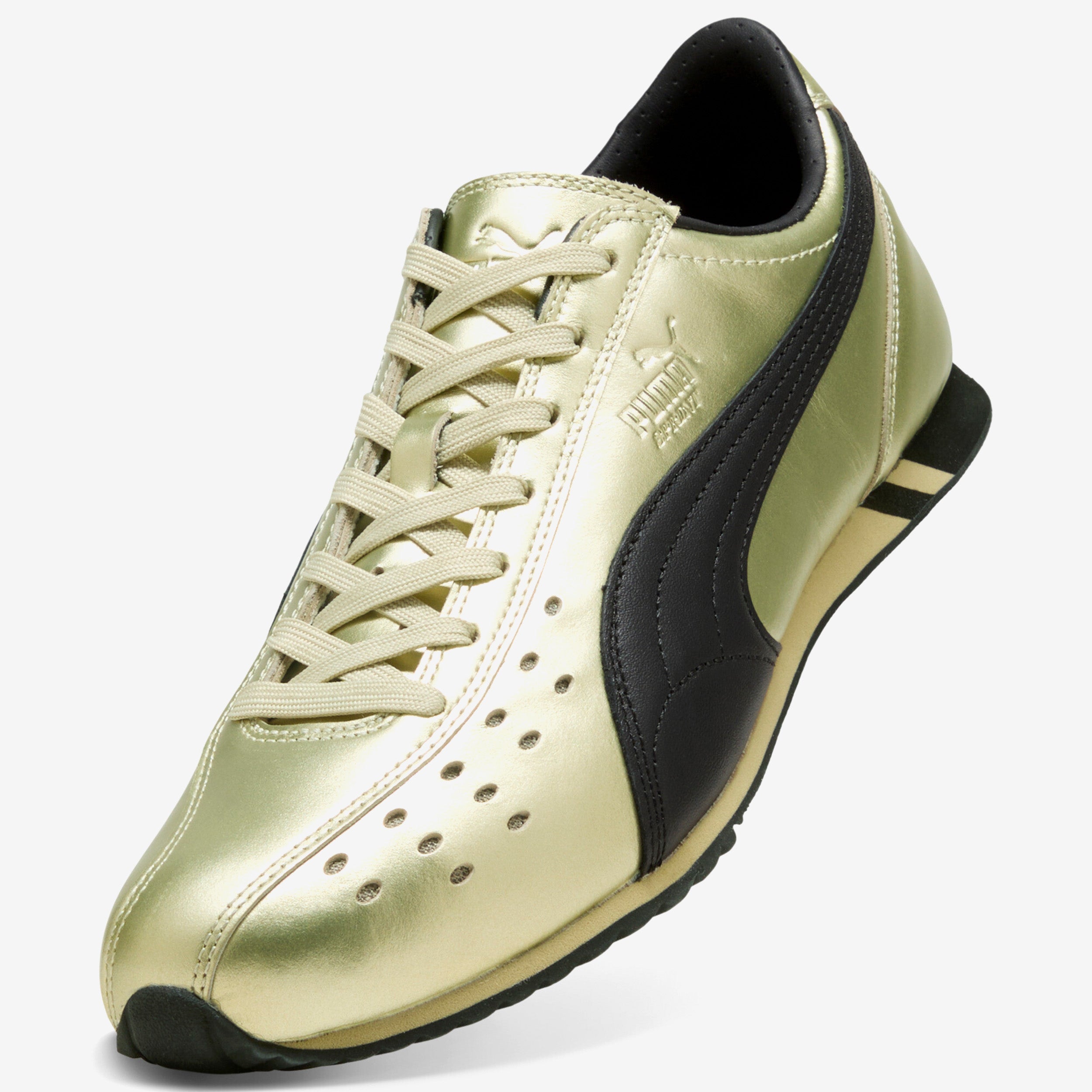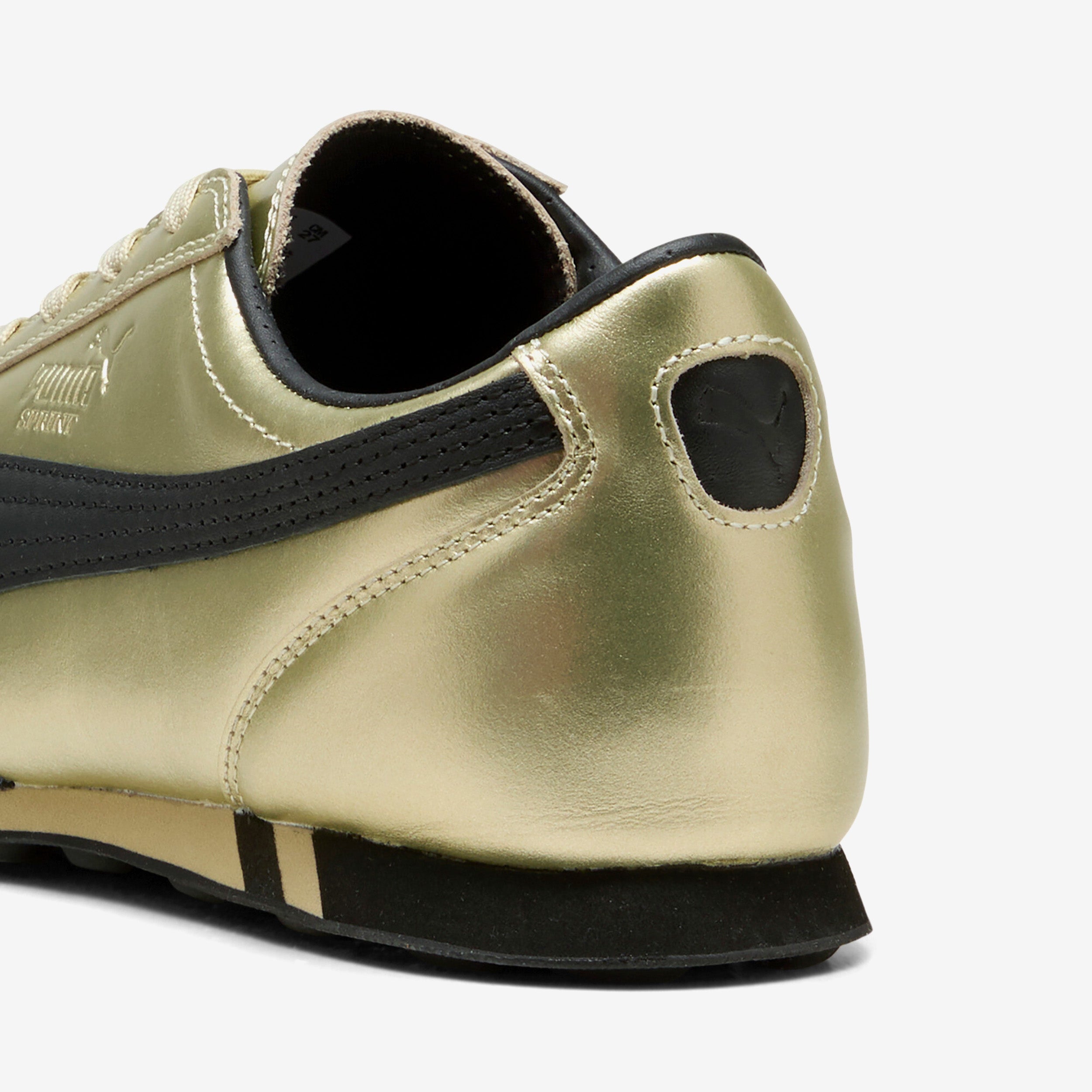 Born in the 2000s as a running shoe, the PUMA Sprint Metallic picks up the pace once again and makes its comeback into the streets. This hidden gem features a cutting-edge metallic leather upper with perforations on the side for extra breathability, a sleek, rounded toe area, and signature PUMA logos atop a durable, race-ready rubber sole.