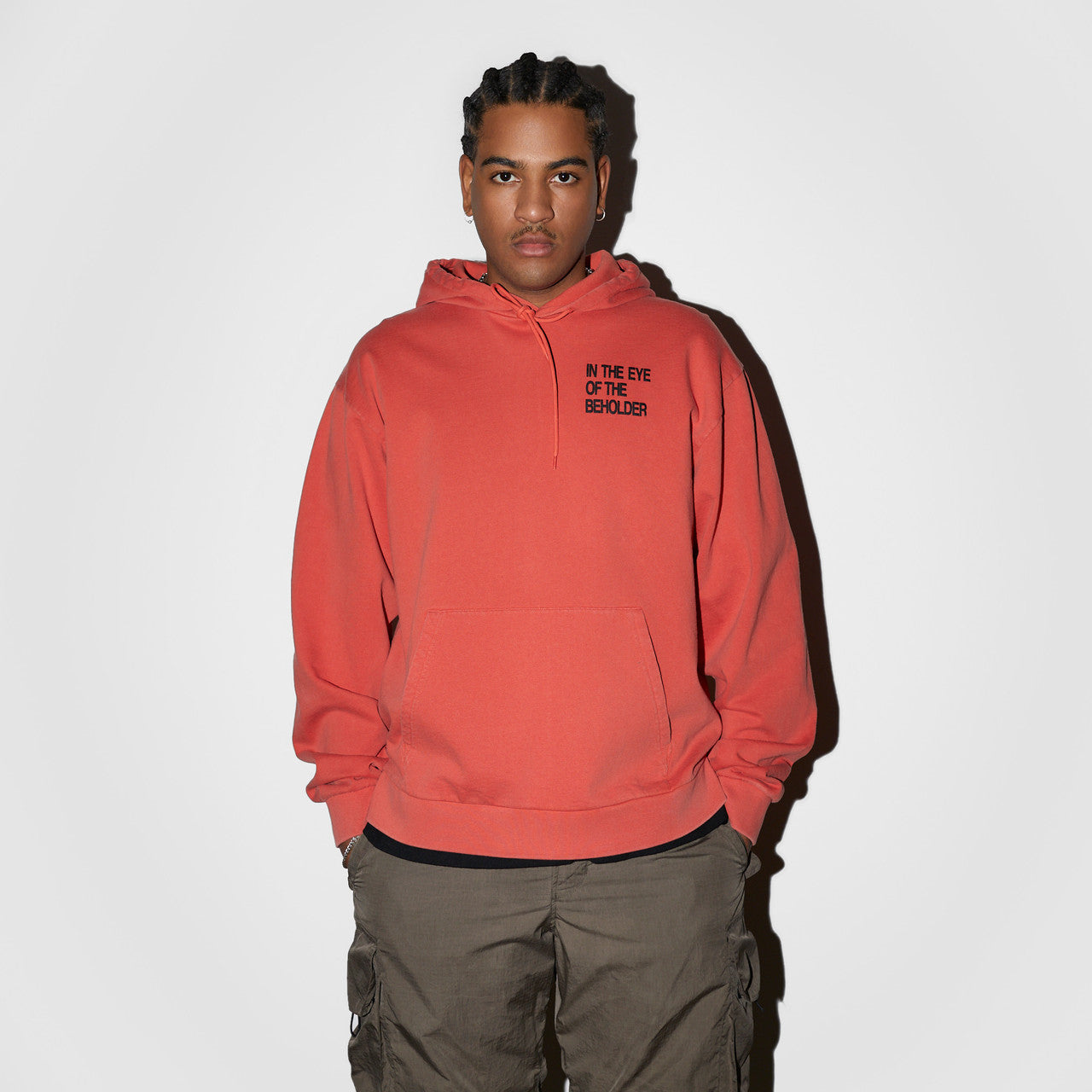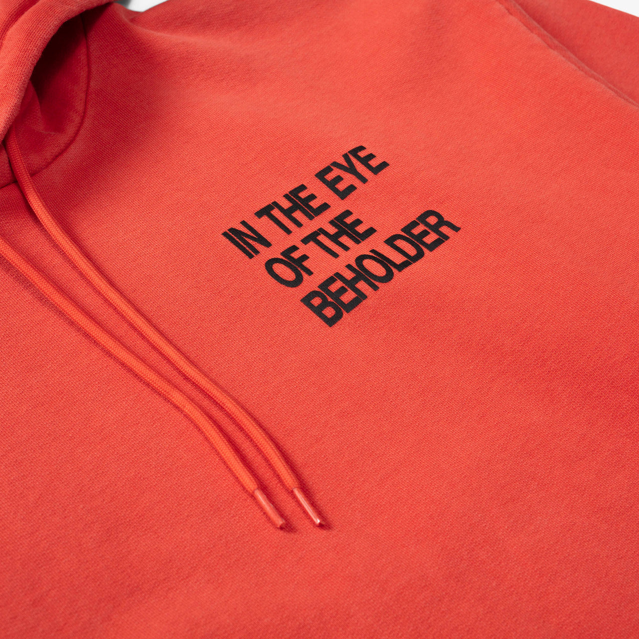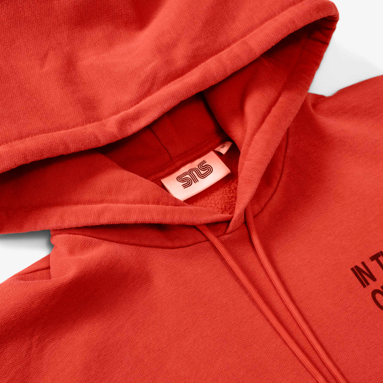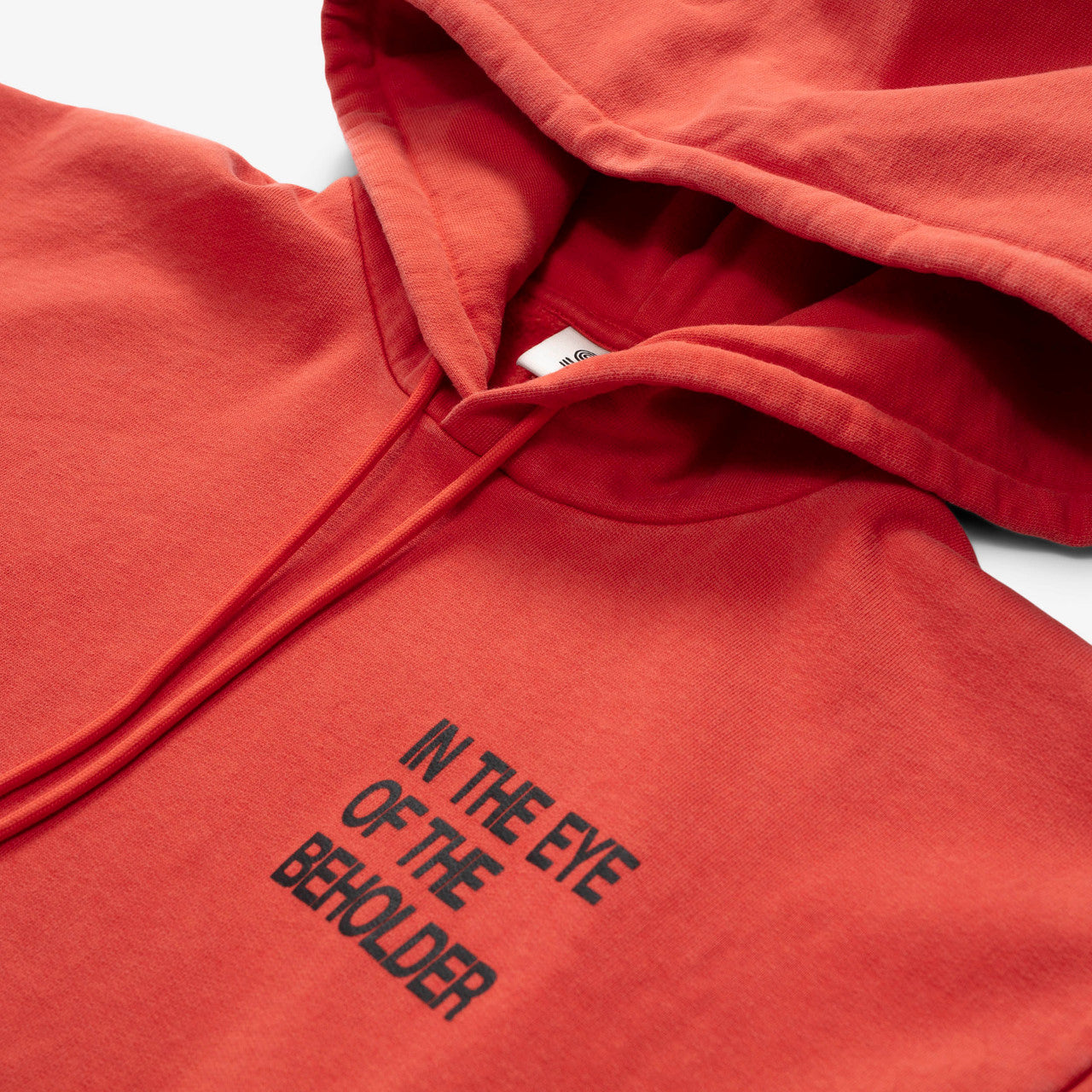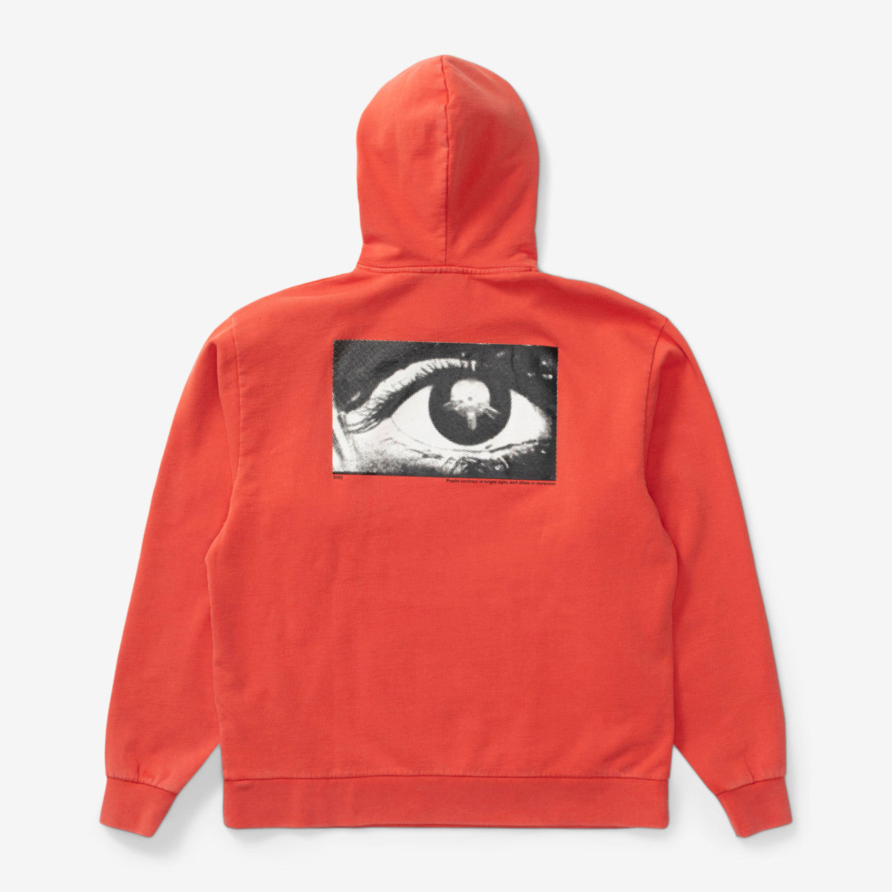 Crafted from premium Portuguese-made GOTS organic cotton, the SNS Eye Hoodie has a washed red colorway with a left-chest “IN THE EYE OF THE BEHOLDER” print and an “EYE” photo print at the back. The long-sleeved hooded sweatshirt features a drawstring hood and kangaroo pocket with elastic finishes at the cuffs and hem.