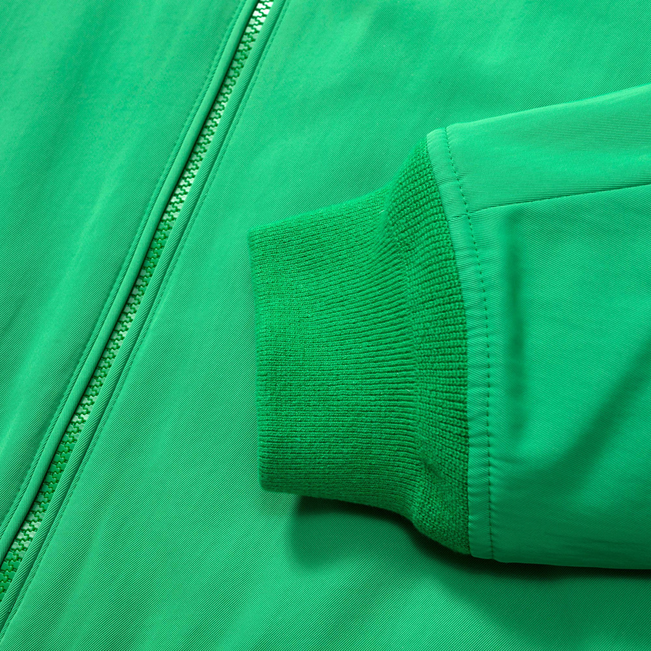 The SNS Nylon Varsity Jacket is part of the Offseason collection, a seasonal nod to summer attires when taking time off. The green varsity jacket features an “OFFSEASON” chest applique, side welt pockets, and elastic ribbed cuffs.